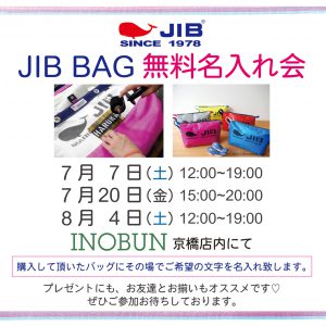 大好評頂いている【JIBバッグ無料名入れ会】第3回目のご案内です♪