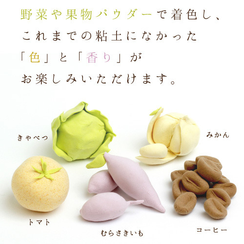 「おやさいねんど」は野菜や果物パウダーで着色した粘土です。