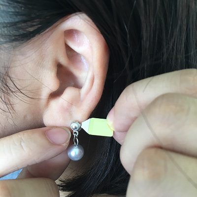 ピアスを押さえながら持ち手をプチッと切り取って、
