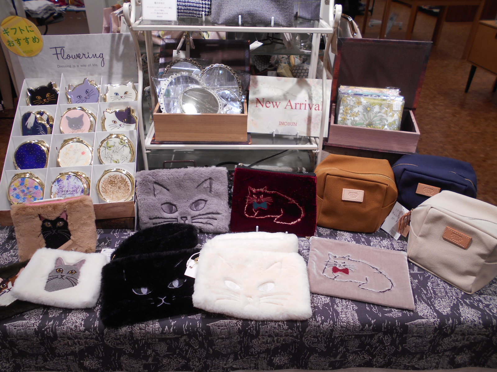 ただ今店頭で秋物とねこモチーフのアイテムを展開しています