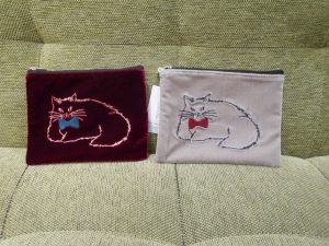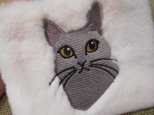 ねこの刺繍はファー生地にあわせて色もちがいます