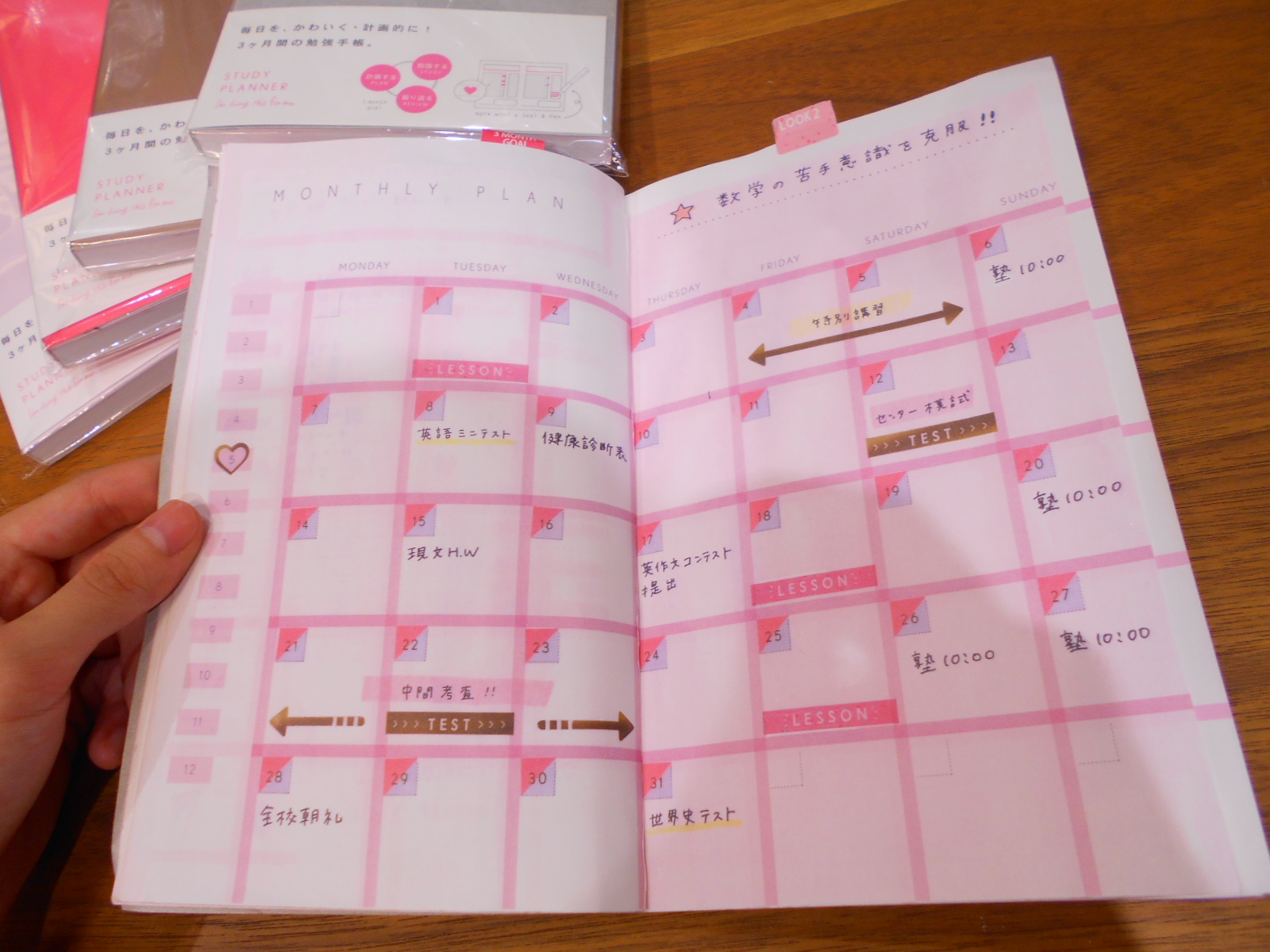 女性らしいピンクが目を引くこちらの手帳、『スタディプランナー』