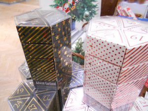 24個のボックスにお菓子やメッセージや小さな贈り物を入れて
