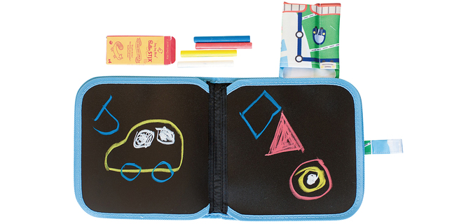 ママのほとんどの方がウエットシートをカバンに準備されていると思うのですが、このノートは水拭きできれいに色が落ちるので何度もお絵描きを楽しめます。手や指を汚しにくく、なめらかな描き心地が気持ち良いチョークセット付で本体のポケットにチョークを収納でき、お出かけにも気軽に持ち運べます。このなめらかな描き心地が素晴らしいです。粉落ちもほとんどありません!移動中にも使える軽さなので、出先で騒ぐ子供達にオススメです。(私の最近の悩みだった、すぐ携帯電話で遊びたがる我が子にも◎悩み解決です)