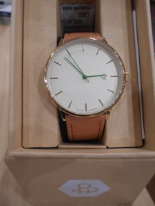 お次はシンプルな文字盤に、グリーンの針が目を引く