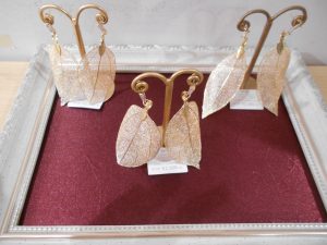 こちらのピアスは実際の葉をメッキ加工して作られているので