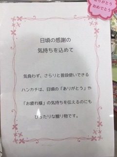 また、ハンカチコーナーにはハンカチと京橋店で人気のハンドクリームなどを組み合わせたギフトセットもご用意しておりますので、是非店頭でご覧になってみて下さい☆