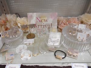 アクセサリー売り場でお花のコーナーを展開しています✿
