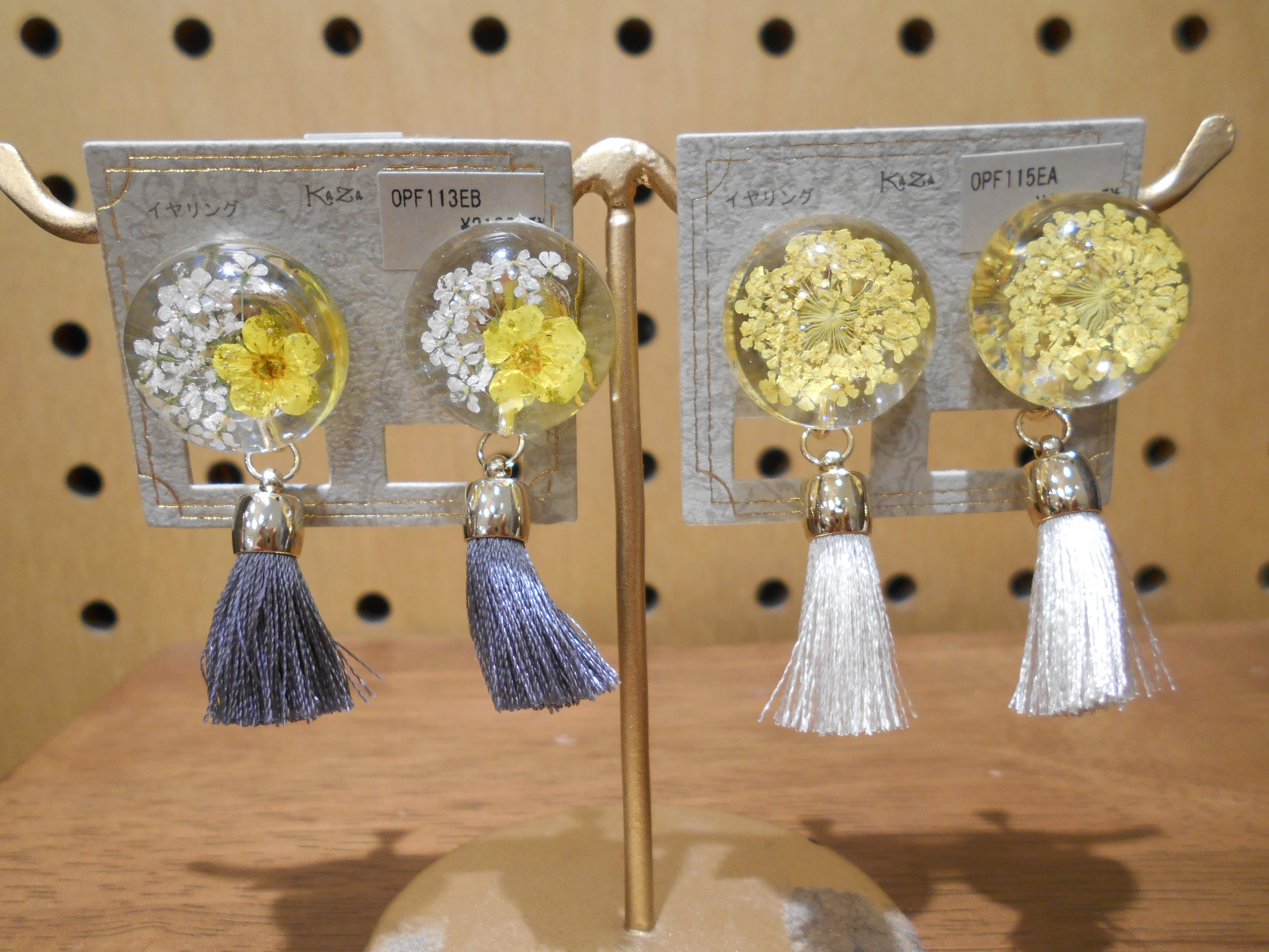 お花が封入された、タッセル付きのイヤリング