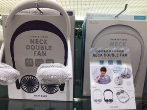 こちらはストラップ付きで首にかけて使ったり、リングがついているので置いても持ち運びにも最適なコンパクト扇風機です!
