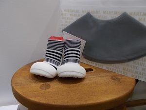 フランスでは、箱の中の紙に赤ちゃんの生まれたときの様子を書いて写真をはり、使い終わったソフィーを入れて、記念にとっておくといいます。そんな演出もフランスならでは。