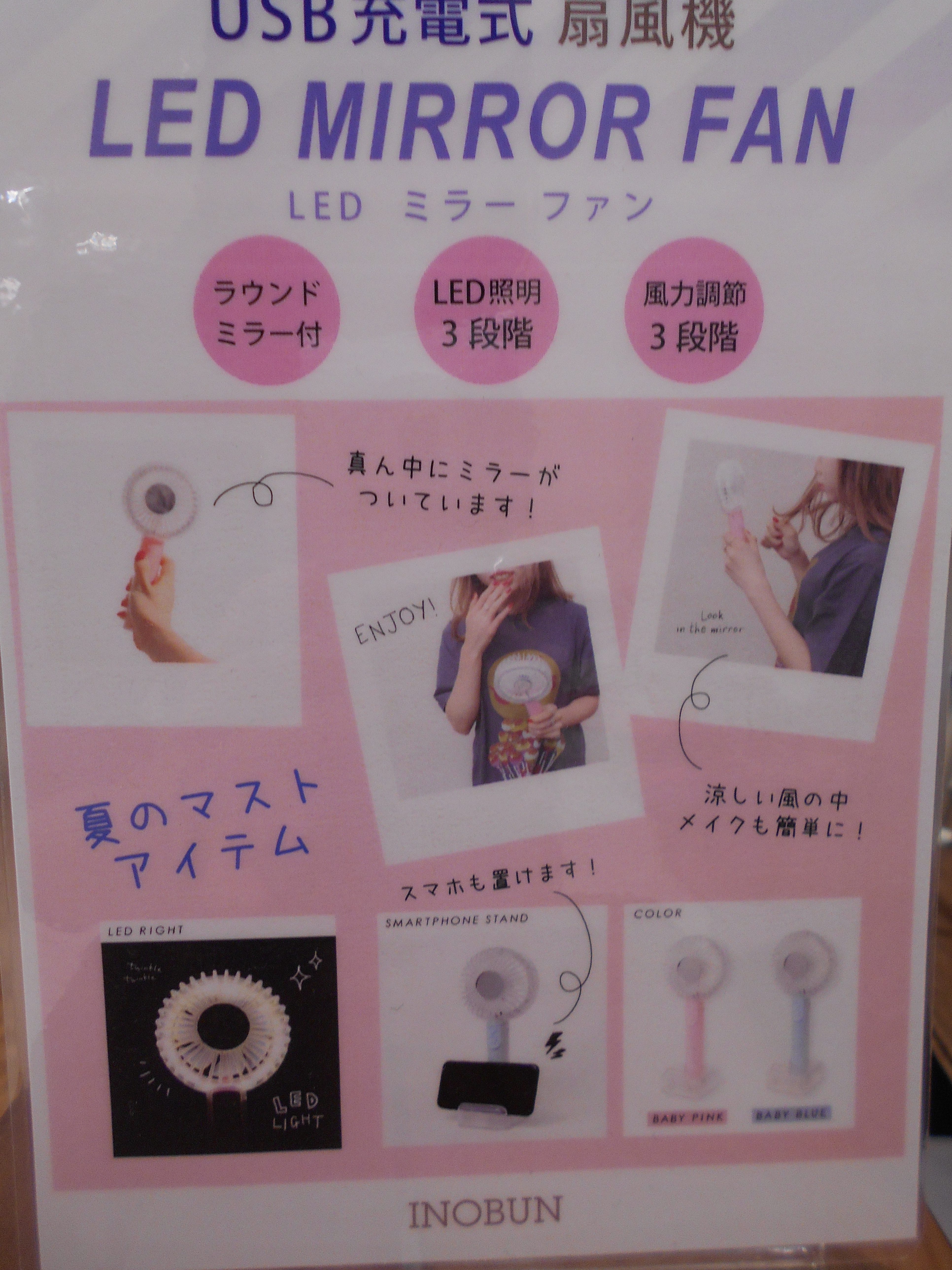 LED照明機能付きで、FANの真ん中にミラーがついています。