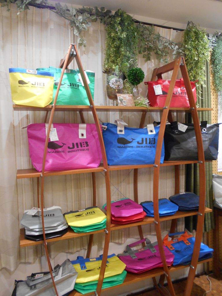 JIB BAG コーナーはポップな色が揃い、楽しい空間になっております。