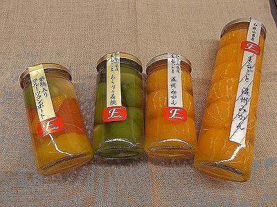 コンポートの種類は、みかん・若桃・ミックスの三種類です。