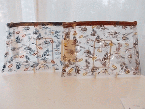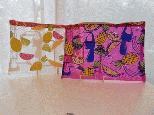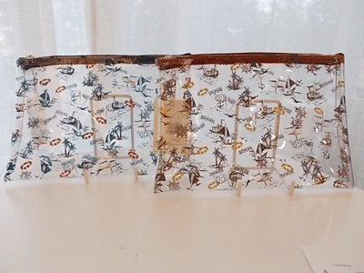 ポーチの柄が海を想像させるような、船やヤシの木のおとなしい柄になっています!