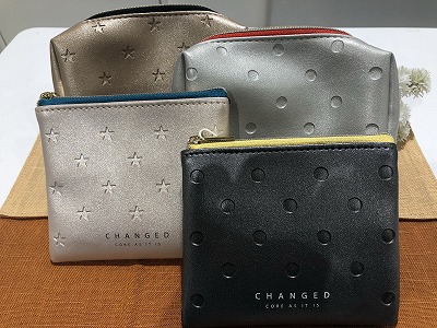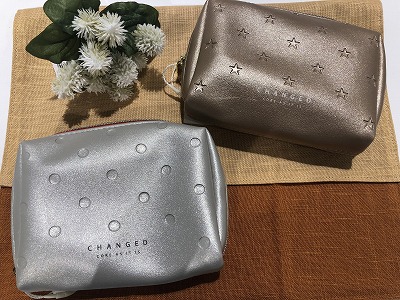 今回ご紹介するのは、おしゃれなラメが特徴の夏らしいポーチです☀大きい方がゴールド・シルバー、小さい方がアイボリー・グレーの4色を展開しております✨