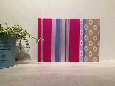 色とりどりの40種類のリボンを使って、自由にアレンジしてアートパネルを作っていきます。