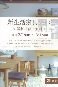 期間中1万円以上家具お買い上げで送料を半額、5万円以上お買い上げで送料を無料にさせて頂きます。