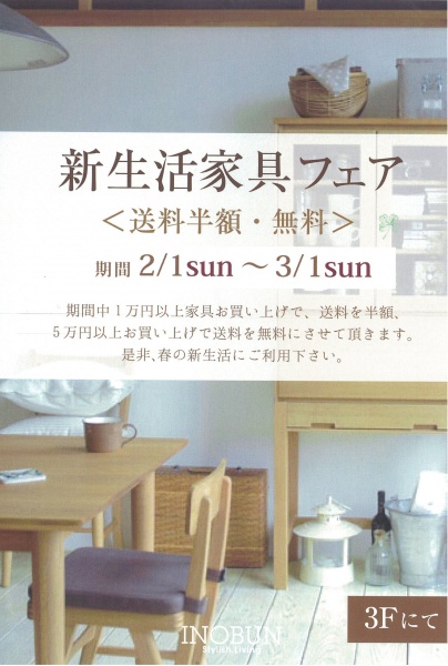 ぜひ、春の新生活にご利用ください。3階で開催しています。