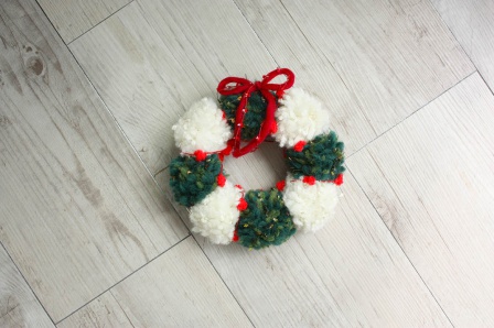 アヴリルの糸で作ったもふもふリースの真ん中にお好きなオーナメントを選んでトッピングして…あなただけのオリジナルリースを作ってみませんか?