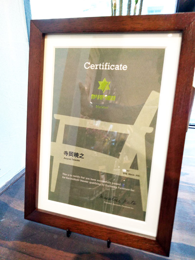 今回、イノブン北山店でも、カリモク60の家具をお買上げいただくお客様に、安心して、また、カリモク60の家具を日々楽しんでお使いいただく為に“カリモク60マイスター”を取得いたしました。