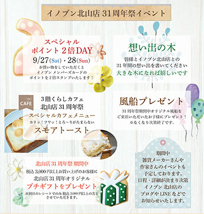 イノブン北山店は皆様のご愛顧を賜り31週年を迎えることができました。