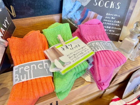 お手軽に色を取いれられるソックスはネオンカラーが◎