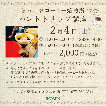 「らっこやコーヒー焙煎所 ハンドドリップ講座」