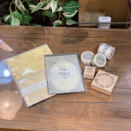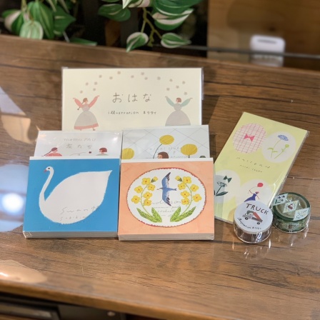 シンプルさとかわいらしさのバランスが絶妙なデザインで、レターセットやスタンプ、ポストカードなど様々な文具を展開します。
