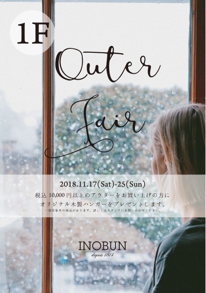 1階では10,000円以上のアウターをお買い上げいただいた方に、厚手のコートなどの保管に便利なイノブンオリジナルの木製ハンガーをプレゼントします。